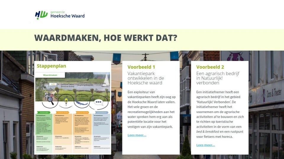 - Vitaal economisch klimaat: Er worden toeristische ‘attracties’ gemaakt die zorgen voor bestedingen en werkgelegenheid. Inwoners en toeristen uit omliggende gebieden geven geld uit in de Hoeksche Waard.